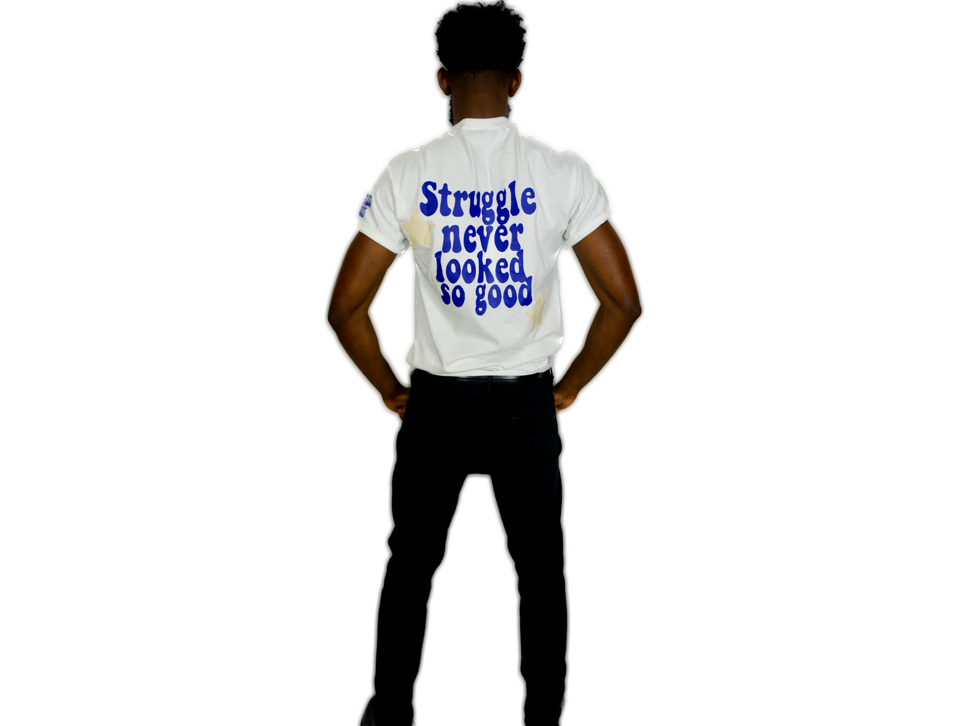 Introducing the "Struggle never looked so Good" tee , a symbol of beauty in the struggle. Featuring “Witnessing greatness” on the front and “Struggle never looked so good” on the back, this tee is a reminder that each step brings you closer to success. With sewn star detailing and puppets on the sleeves, this tee reflects the journey of striving for greatness. Embrace the struggles and witness greatness with this statement tee.
